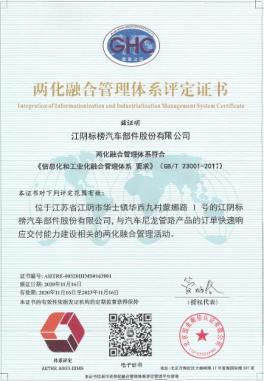 近日,公司順利通過(guò)兩化融合管理體系評(píng)定,并獲得評(píng)定證書(shū)。